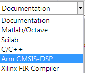 As with floating point arithmetic, select the Arm CMSIS-DSP framework from the selection box in the filter summary window: